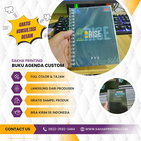 Buku agenda custom dengan desain elegan, cocok untuk branding perusahaan dan hadiah eksklusif.