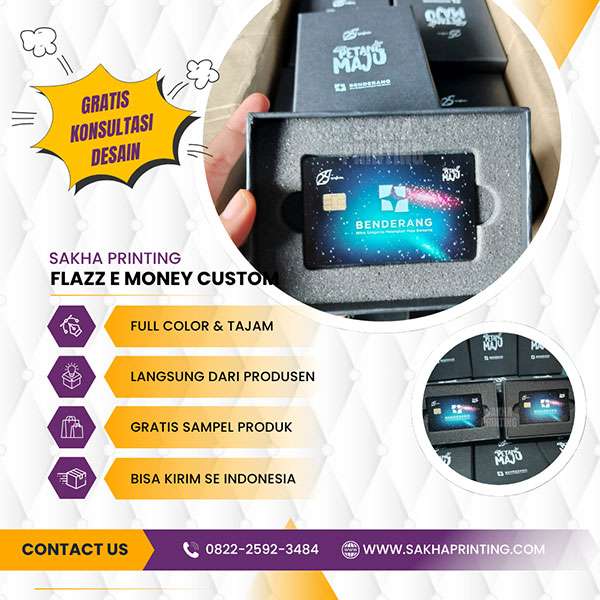 Kartu Flazz e-Money custom dengan desain pribadi atau logo, cocok untuk hadiah dan promosi brand.