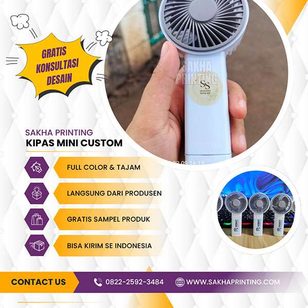 Kipas mini custom dengan desain unik, praktis untuk promosi, souvenir, dan penggunaan sehari-hari.