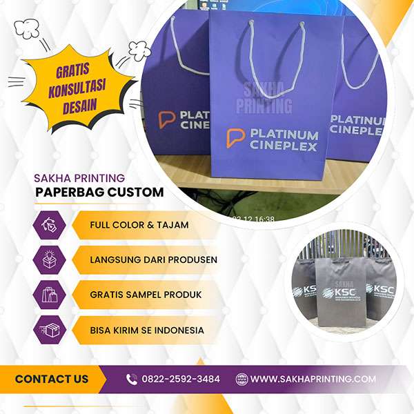 Paperbag custom dengan desain elegan, ideal untuk kemasan produk, acara, dan branding bisnis.
