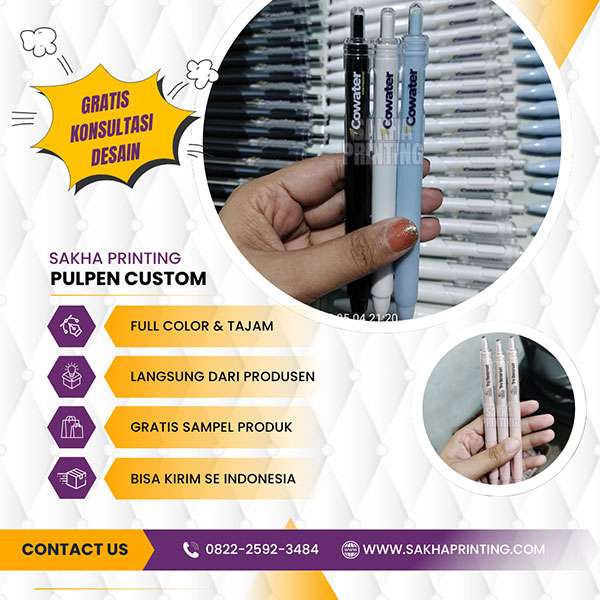 Pulpen custom dengan desain sesuai keinginan, cocok untuk promosi, hadiah, atau acara khusus.