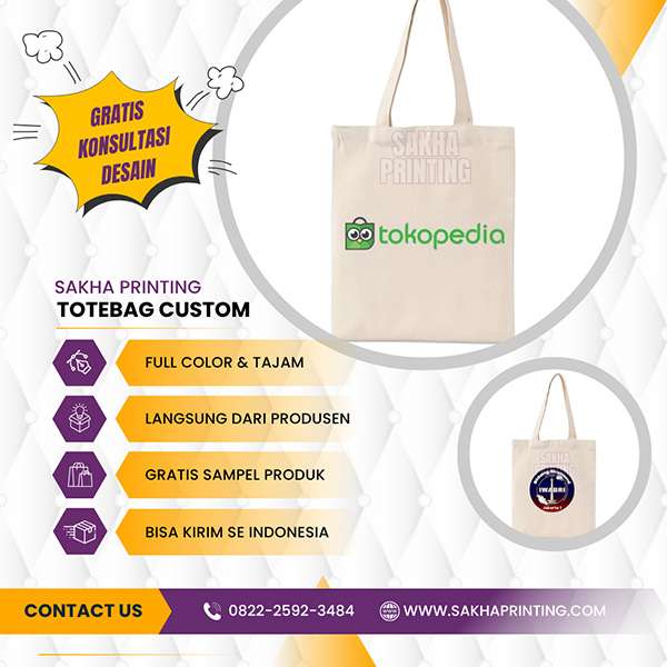 Totebag custom dengan desain menarik, cocok untuk promosi, hadiah, dan kebutuhan sehari-hari.